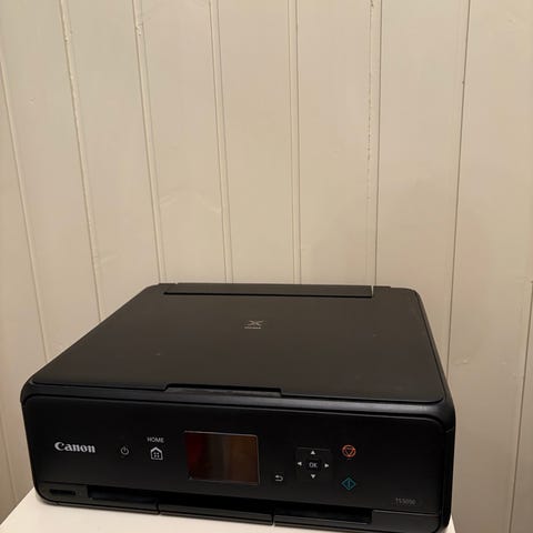 Canon Pixma TS5150 multifunksjonsskriver med fargeskjerm og trådløs tilkobling. Skriveren støtter kopiering, skanning og utskrift. Kompatibel med standard blekkpatroner og egnet for hjemme- eller kontorbruk.