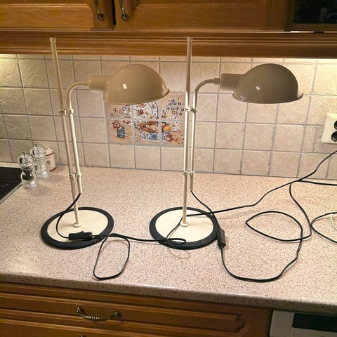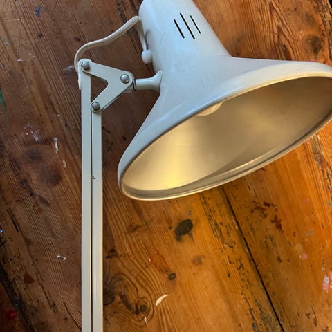 Gul lampe i retrostil selges da den bare samler støv. Lampen kan justeres på, og fungerer som den skal.