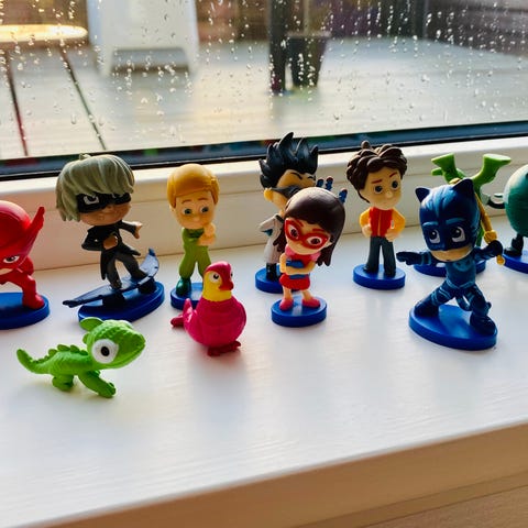 PJ Masks lekesett med flere figurer og tilbehør. Inkluderer karakterer fra serien samt en rød båt og en rød maske. Selges helst samlet for 250kr