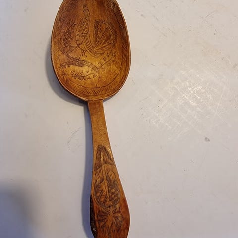 34 x 19 cm. Høyde 17,5 cm. Bærehåndtak i endene. Litt avskala i maling på lokk, ellers fin patina og slitasje. Er fra 1944, og har vært brukt til syskrin.