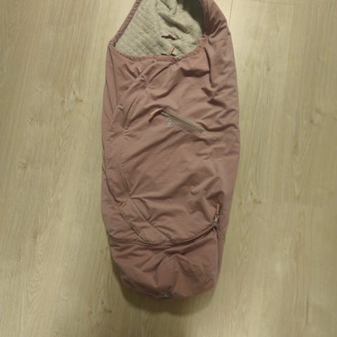Vognpose i dun fra easygrow. God og var om vinteren. Ypperlig kvalitet. Den er brukt av tre barn, men alle glidelåser og funksjoner er helt fine enda. Gode låsemekanismer holder barnet varmt. Flere åpninger til vognfeste, justeres etter alder.