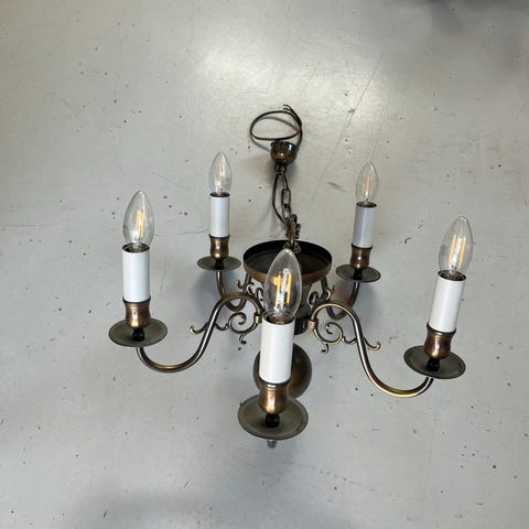 Høvik takpendel hengelampe i retrostil med ravfarget glass og messingdetaljer.