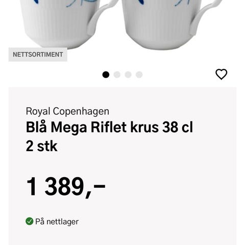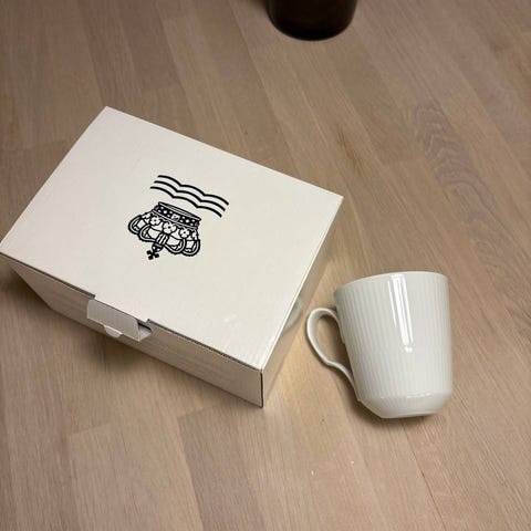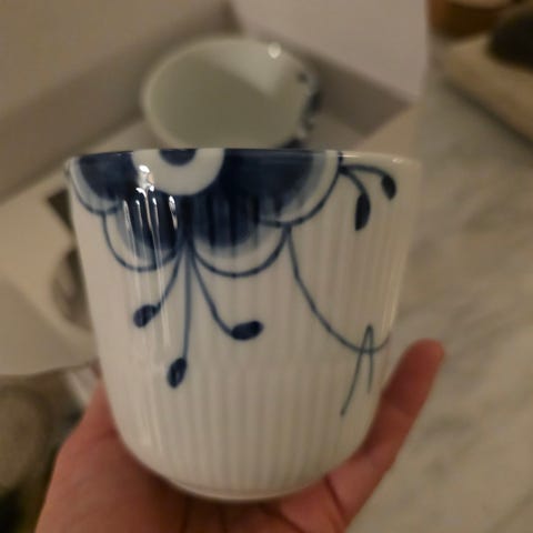 Nye termokopper fra Royal Copenhagen, håndmalte selges kr 500 pr stk, koster i butikk 989,-