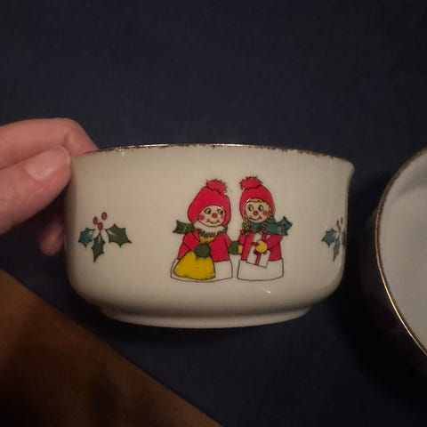 Juletre i tre på sokkel med nisse og gaver. Høyde 33 cm. Må hentes.