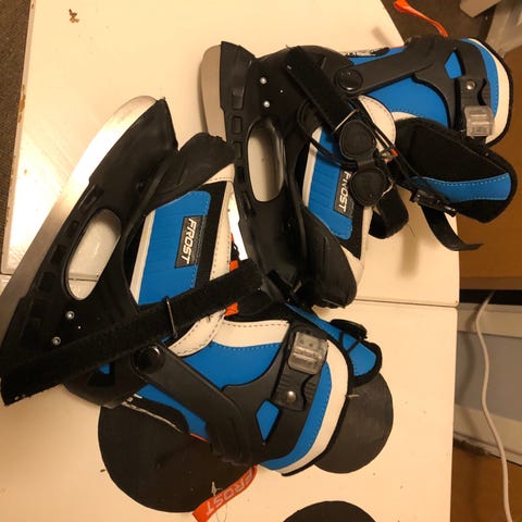 Skøyter som vokser med barnet, veldig praktisk og fint for flere sesonger. Skøytene er godt brukt, men ingen feil eller mangler.