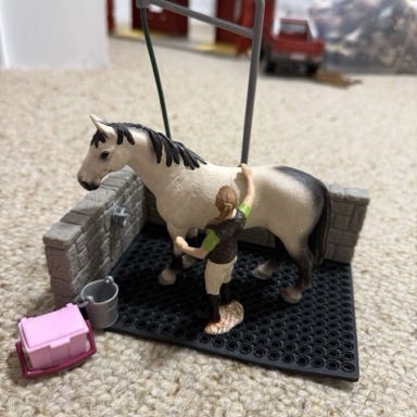 Masse Schleich hesteleker selges kr. 2000. Pent brukt. Følger bla. med stall, veterinærbil, bil m/henger osv. Alt av utstyr til det forskjellige følger også med.