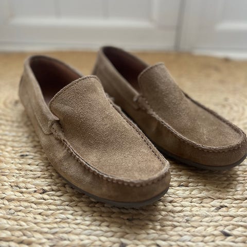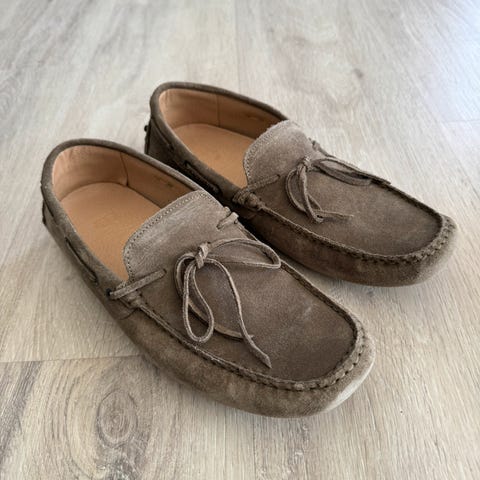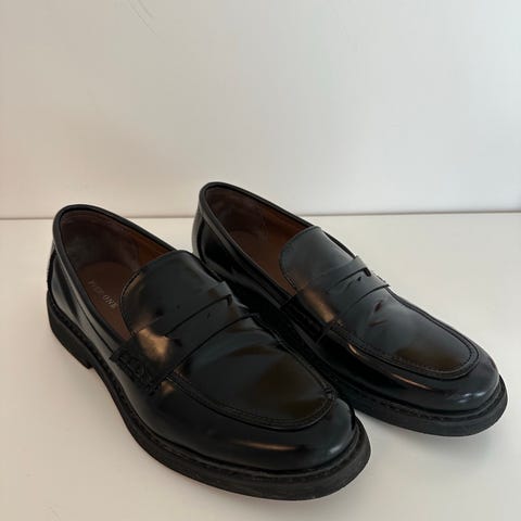 Gianni mokkasiner i størrelse 45. Skoene har en blank overflate og en klassisk design med lav hæl.