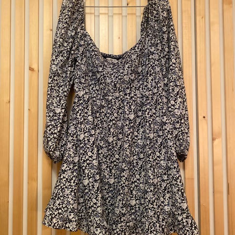 Abercrombie & Fitch hverdagskjole i denim. Kjolen har blå farge og er i størrelse XL. Laget av denim materiale, men med veldig god stretch. Behagelig å ha på. Stroppene kan justeres i lengden.