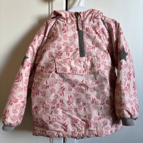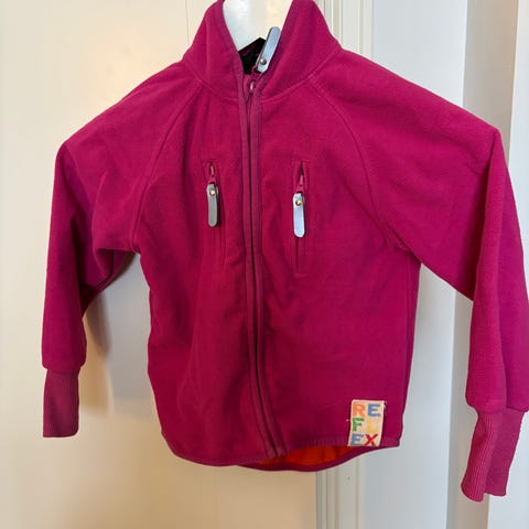 Reflex barnejakke i lilla farge, størrelse 104, designet for jenter. Jakken er god og passer perfekt til kalde vinterdager. Den har hette og glidelås og alt av knapper, glide og borrelås er i perfekt tilstand, egnet for jente eller unisex da lillafargen ikke er veldig jentete. Jakken er lite brukt innimellom til og fra småturer.