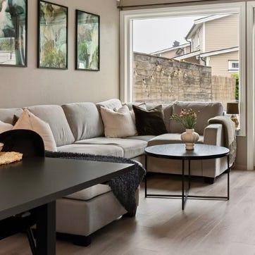 Sofa m/sjeselong. 8 mnd gammel. Sandfarget2,5-seters .