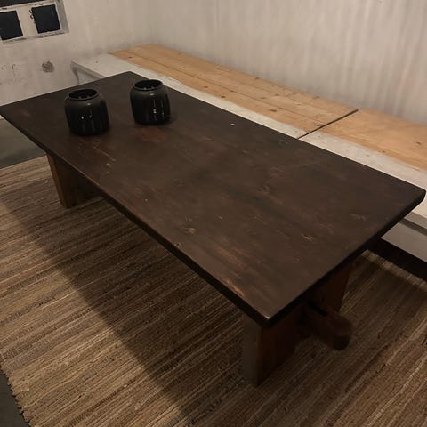 Det er så blankpolert at tak og ting i rommet speiler seg mye i bordplaten.