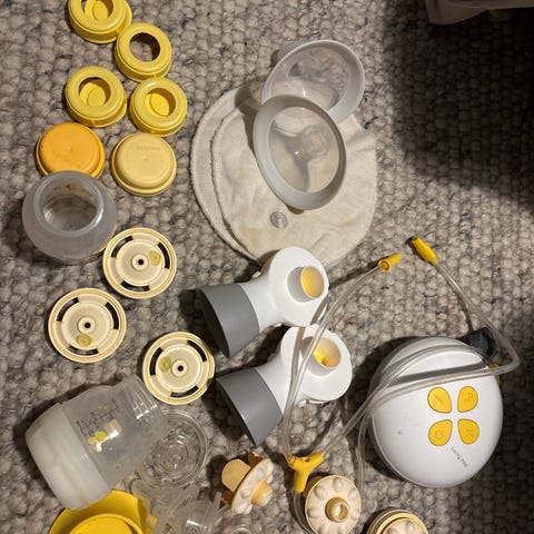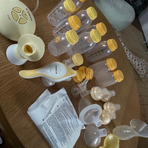 Selger brystpumpeutstyr, brukt av en mor til et barn. Alt i alt er følgende med: