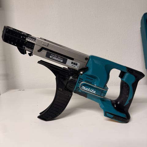 Medfølger batteri, lader og vannbeholder som hektes på.