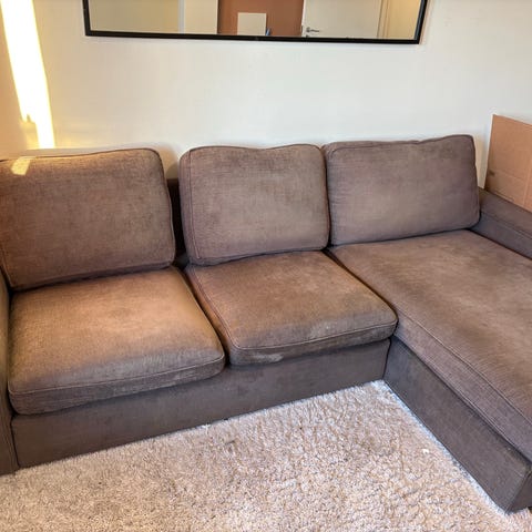 Enkelte merker i sofaen, men ikke forsøkt å fjerne disse ved rens.