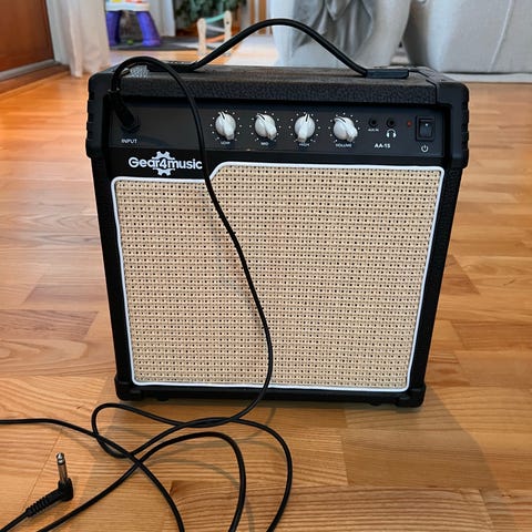 Behringer V-Tone GM108 gitarforsterker med innebygd høyttaler og kontrollpanel for justering av lyd. Oppbevart i lagring siden 2018, lite brukt. Leveres med strøm- og Jack-kabel. Passer til elektrisk gitar.