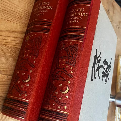 Norske Gardsbruk utgitt i Oslo i 1948 selges hbo kr. 800.