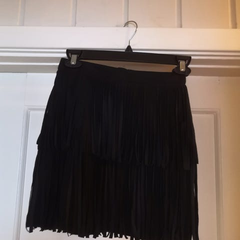 H&M Svart bomullskjol for dame i størrelse 32. Kjolen er laget av bomullsmateriale og har et lagdelt design med elastisk midje.