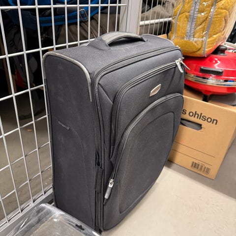 Samsonite koffert i plast, unisex. Kofferten har hjul og håndtak, med flere oppbevaringsrom innvendig. Materialet er slitesterkt plast, egnet for reisebruk.