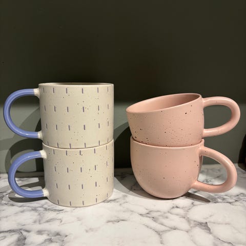 Diverse kopper og krus 10kr stykke, den orange og den gule koppen er 50kr per