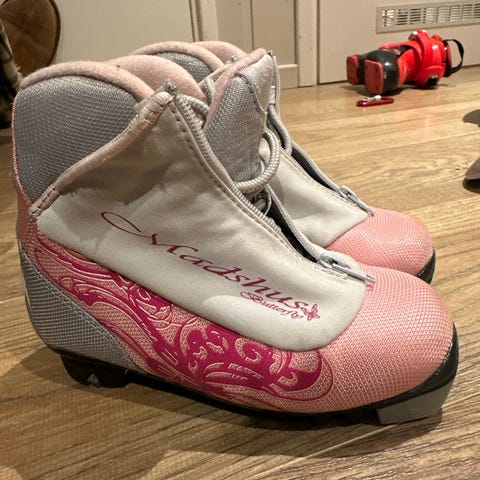 Godt brukt, men alt funker. Gode og varme. Glir rett ned i bindingen.
