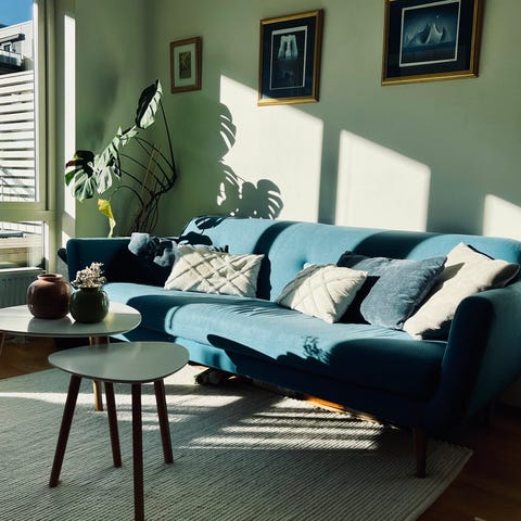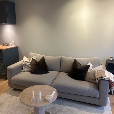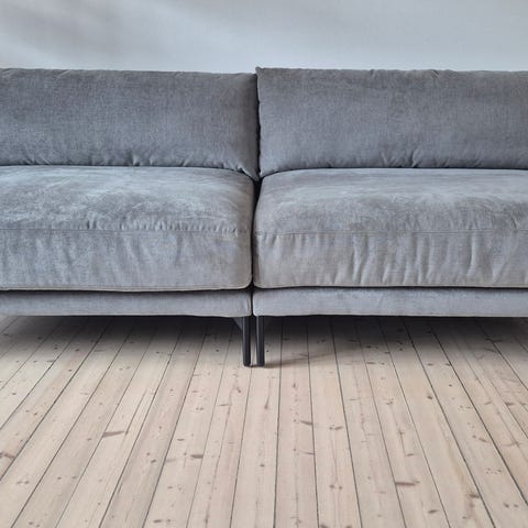 Douglas 3-seter sofa med fotskammel selges grunnet ikke lenger i bruk. Fra Sofacompany. Pent brukt. Normal slitasje på stoff etter fire års bruk. Ingen skader.
