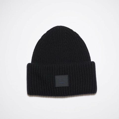 Moncler lue i ull. Unisex. Luen har ribbestrikk og logo på fronten. Sort. Brukt en gang da den ble for stor for meg.