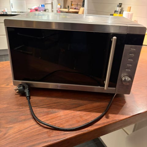 Kenwood mikrobølgeovn i hvit farge. Utstyrt med mekaniske brytere og digitalt display for enkel betjening. Inneholder roterende tallerken for jevn oppvarming av mat.