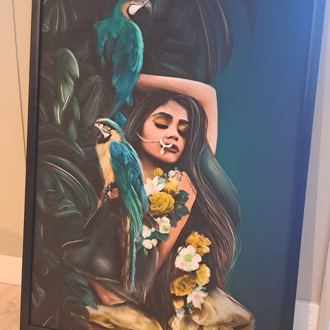 Helt og fint Linda Skaret glassbilde fra Kremmerhuset, 80 x 100 cm.
