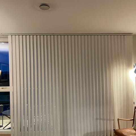 3 stk lameller i hvit, tilpasset vindusstørrelse som vist på bildet. Laget av slitesterkt materiale, egnet for regulering av lys og innsyn i rommet.