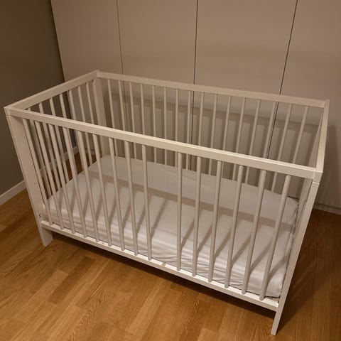 Link til seng: https://www.ikea.com/no/no/p/gulliver-sprinkelseng-hvit-10248519/