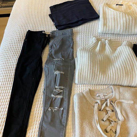 Selger en diger klespakke med div klær til dame etter et raid i klær som ikke passer lenger. Noe er lite brukt, andre plagg er mer brukt, men alle er hele og pene, uten flekker eller hull. Her har du ca alt du trenger. Har tatt bilde av noe, kan sende flere ved behov.