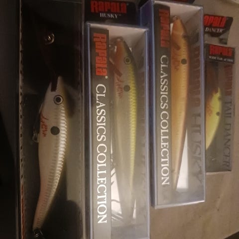 Gode havfiskesluker. Nye kroker bør settes på. Snapvirvler og eske medfølger.
