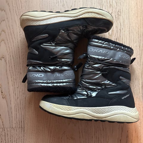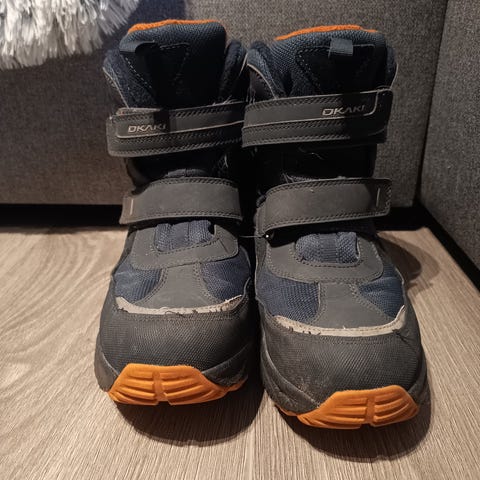 Godt brukte Okaki vintersko str. 40 selges da de er for små. Den ene glidelåsen er noe trang, men har fungert ok. Mye sko igjen.