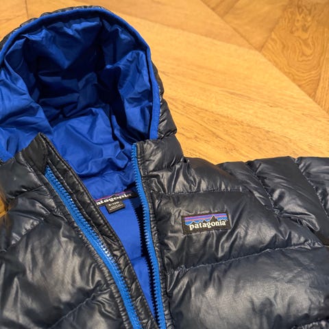 Patagonia Infant Hi-Loft jakke i dun, størrelse 92, grønn farge, unisex modell. Varm og god, pent brukt