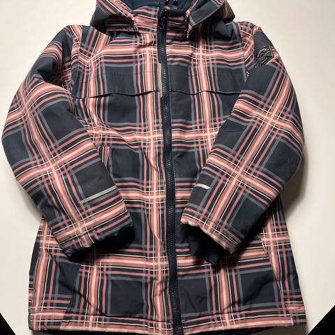 Nydelig Name it jakke for jente i størrelse 128. Jakken er mørkeblå med hette med myk kant i beige. Ble fort for liten og er nesten ikke brukt.