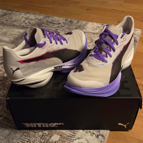 Hoka Cielo X1 2.0 løpeko i str 44 1/2 selges pga. for stor skopark. Brukt 39 km.
