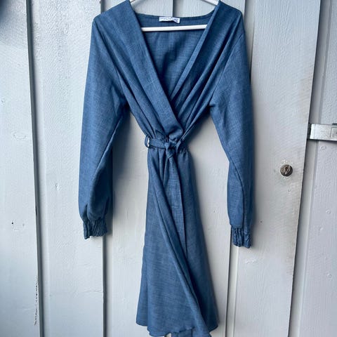Floyd kjole mørk blå. Med knyting. Veldig fin på. Normal i størrelsen
