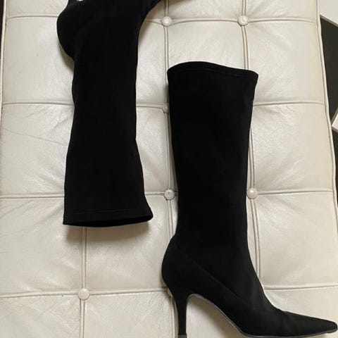 Eksklusive, nye og ubrukte DKNY støvletter i sort. Tidløs og elegant modell med stabil hæl. Str. 38.