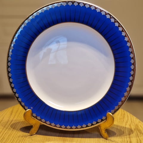 Stjernholm deler av servise med blått landskapsmotiv