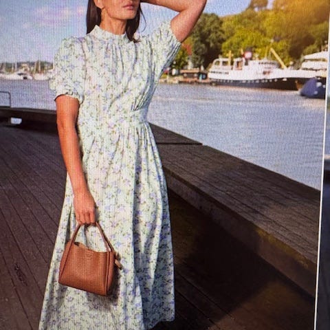 Floyd sommerkjole i størrelse L. Kjolen har flerfarget mønster. Passer til bruk som lett og fargerik sommerbekledning. Medfølger belte.