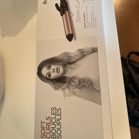 Babyliss Curl Secret krølltang i hvit og lilla farge. Elektrisk hårstyler designet for å lage krøller ved hjelp av varme. Passer til personlig bruk for styling av hår.