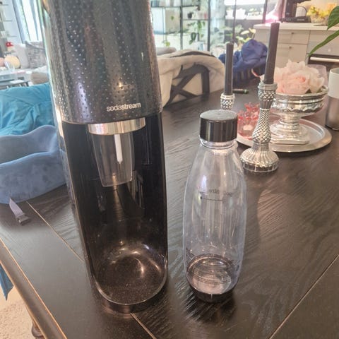 Elektrisk sodastream maskin selges. 3 ulike nivåer for kullsyre. I god stand. To literflasker og en 0,5l flaske inkludert.