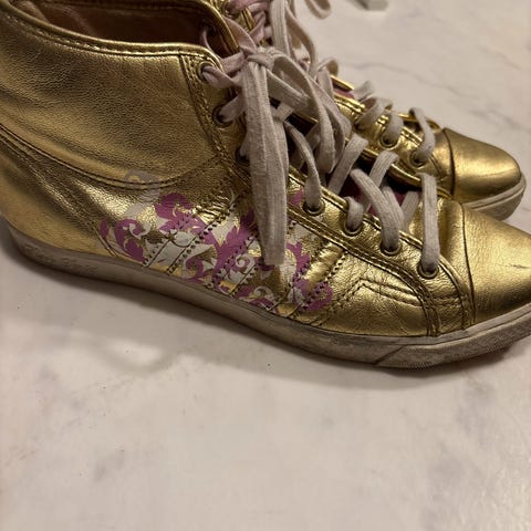 Pent brukte Adidas sneakers størrelse 37 1/3. Opprinnelig rosa, men er litt skitne og fremstår noe falmet. De kan sikkert vaskes/børstes freshe igjen.