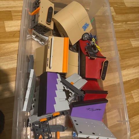 Tech Deck Sk8 Garage + Jump n grind + ekstra rampe og flere fingerskateboard selges samlet. Guttungen har ikke brukt dette så masse, lekene er pent brukt.
