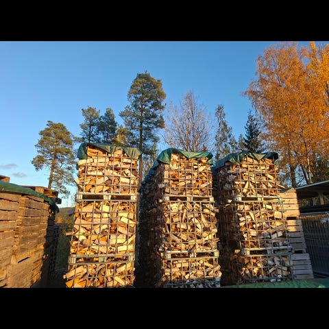 Tørr og fin bjørkeved, klar til bruk.
