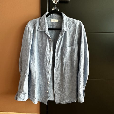 Uniqlo skjorte for herre i størrelse L. Skjorten er grønn og laget av bomull. Selger fordi det passer ikke meg.