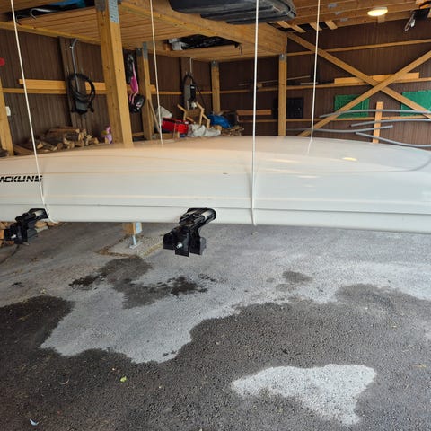 Låsbar ski holdere for to par ski. To holdere av plast med gummiprofiler. For montering på bagasjebærer med mål 43 x 32 mm.