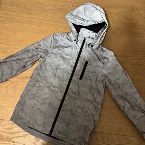 Selges en jakke fra Name it som er grå som blir refleks i mørket. Den selges for 100kr.