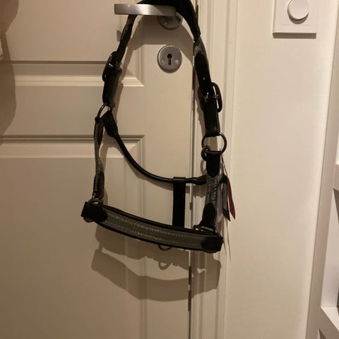B Vertigo COB grime i blå. Grimen har metallspenner og ring for justering og feste. Egnet for bruk på hest for å gi kontroll og sikkerhet. Passer for ulike hester og er designet for komfort og holdbarhet.