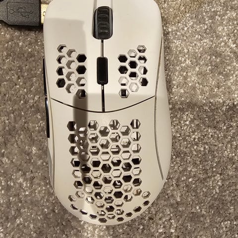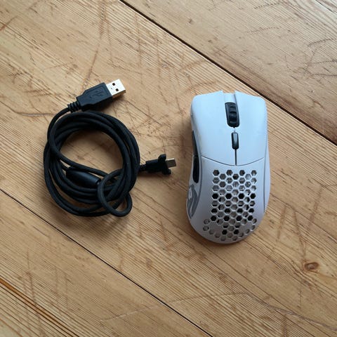 Glorious Model O Tilleggsutstyr datamus med svart farge. Designet med hullmønster for redusert vekt og forbedret ventilasjon. Kablet tilkobling for stabil overføring.
